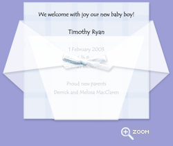 · Vellum diaper holder with matching satin bow · Personalized plaid card insert · Up to 6 lines of text on insert · Actual size ~3.5" x 3.75" · Sample Wording