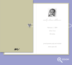 · Two-tone folded card · Initial with choice of pewter closure (front) · Personalized black & white photo (inside) · Up to 7 lines of text (inside) · Actual size folded ~3" x 5" · Sample Wording