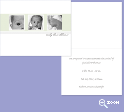 · Folded card with name/text (front) · 3 personalized black and white photos (front) · Up to 7 lines of text (inside) · Actual size folded ~4.5" x 3.5" · Sample Wording